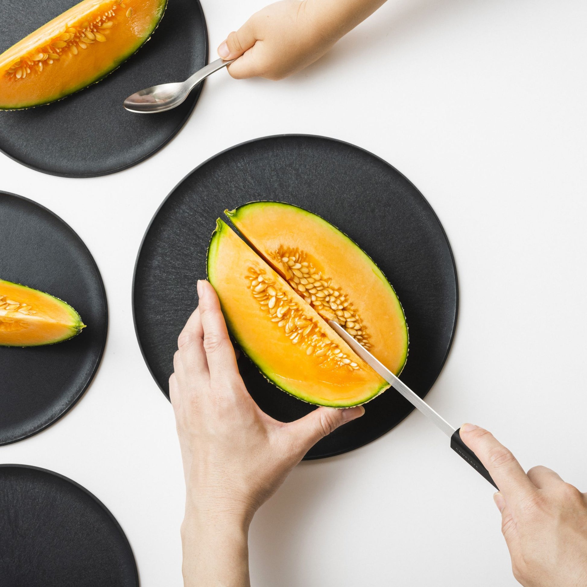 To make this two-in-one design work, CHOPLATE has a gently curved rim: high enough to prevent liquids from spilling, but low enough to stay out of the way while cutting. A small but clever detail that makes a big difference.